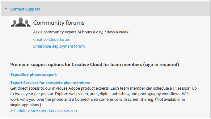 One difference with Creative Cloud for Teams versus the cheaper Creative Cloud for Individuals is that CC for Teams members get 2 Expert Support Sessions per license per year with Adobe.