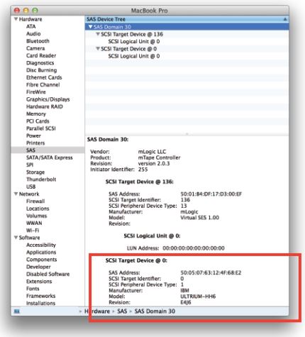 2) Under “System Information”, verify that the IBM Ultrium LTO-6 inside of mTape is displayed under the “SAS” setting…