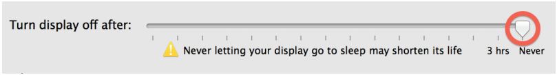 -Mac OS X 10.9.x Go to System Preferences – Energy Saver – Set “Turn display off after:” to Never.