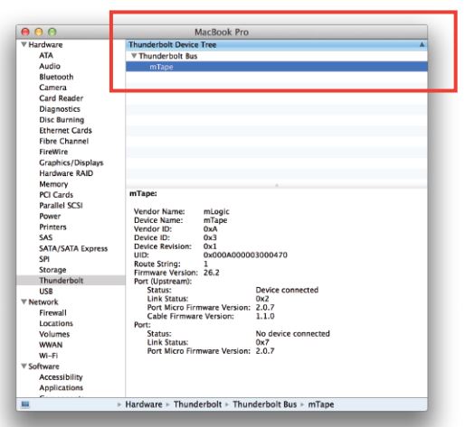 1) Under “System Information”, verify mTape is displayed under “Thunderbolt” setting…..
