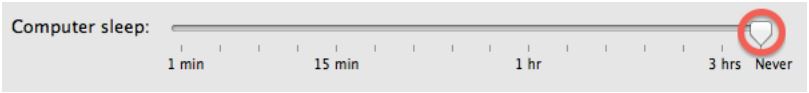 -Mac OS X 10.8.x Go to System Preferences – Energy Saver – Set “Computer sleep:” to Never.