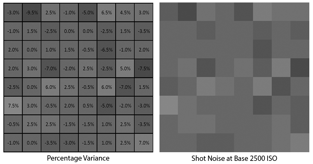 If you’ve ever worked with a camera with Dual Base ISO, or just done some research on it, you already know that no matter how many times the manufacturers claim that both ISO ratings have the same or very similar noise profiles, the images produced at higher base ISO settings have a noticeably higher amount of noise. My first experience with this was shortly after the release of the Panasonic EVA1. I was testing it against the Sony FS5 and FS7 cameras and shot it at both its base ISO settings. I was really surprised at how much nosier the higher base ISO setting was. Some of this was a result of the early firmware not having a robust enough codec to really handle the recording and has been much improved with later updates, but much of it was actually due to Shot Noise.