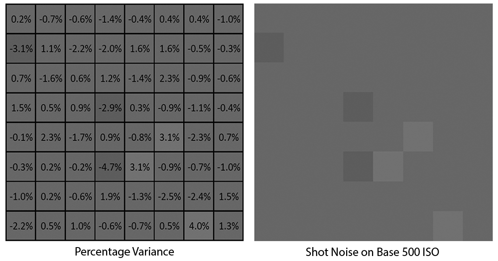 For example, if you flipped a coin 100 times in a perfect world you would get 50 heads and 50 tails. Since there is a certain amount of randomness in the world the odds that you would actually get equal numbers of heads and tails is relatively small. Multiply that out over many sets of 100 coin flips and you would expect to see that each result falls within a certain range around the actual median result. In statistics we would define a range above and below the average as “standard deviation”, results that fall outside the standard deviation would be statistically anomalous and would be the “noise” described by Shot Noise. In statistics, if too many results fall outside the standard deviation, the results of the analysis cannot be said to be “statistically significant” meaning the overall result can’t be relied upon to give us credible information. In imaging, Shot Noise creates a different result that we will get to later in this article.