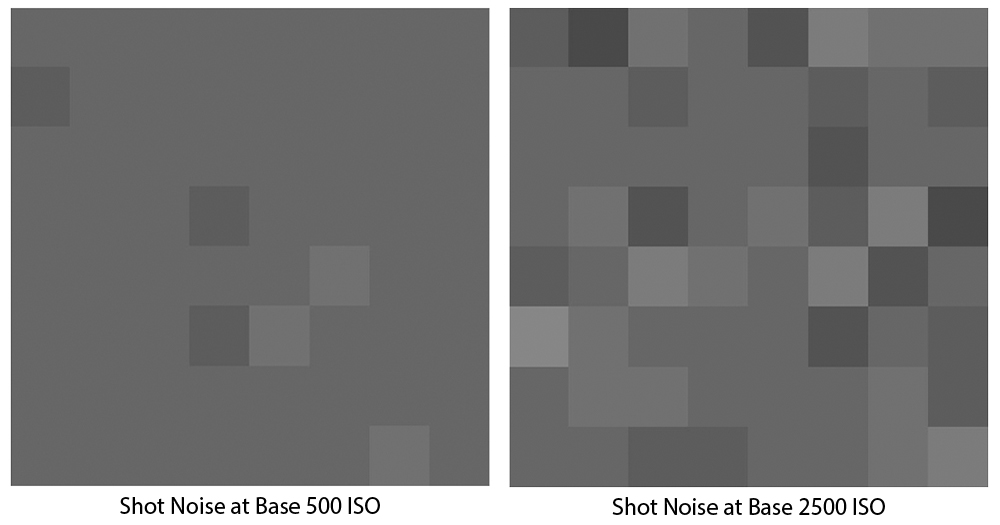 The concept of Shot Noise was first brought to my attention during a discussion about dual base ISO in digital cinema cameras. This is a relatively new development in digital cinema cameras, and there are only a handful that have dual native ISO. Among them are Sony VENICE, Panasonic Varicam35, Panasonic VaricamLT, Panasonic EVA1, and the Blackmagic Pocket Cinema Camera 4k.
