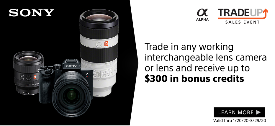- Trade-in any working digital or film interchangeable lens camera or lens and receive up to a $300 bonus towards the purchase of select Sony Alpha cameras or lenses plus the value of your trade-in. Bonus offers are stackable with instant rebates increasing your savings.