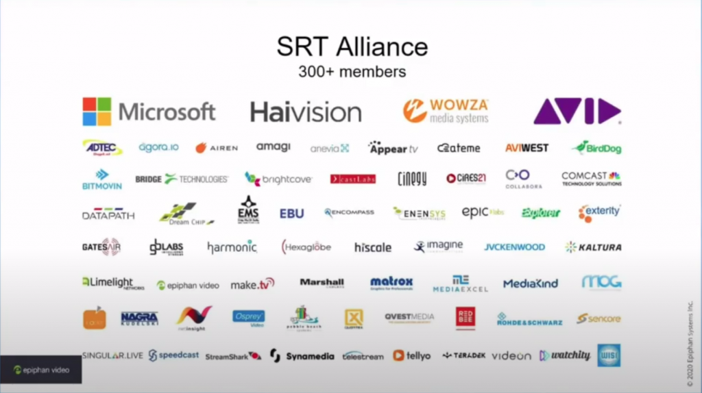 SRT was invented by Haivision, but it then has become an open standard. The SRT Alliance is a group of manufacturers that have adopted SRT technology: