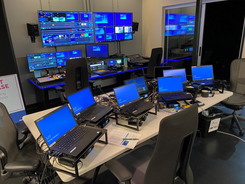 We recommended a NewTek Tricaster TC-1 with (3) Panasonic AW-UE100 4k PTZ cameras, each with teleprompters. For the on-camera talent they went with six channels of Shure wireless with a 4 channel IFB system. The IFB’s were tied into a state-of-the-art Bosch / RTS digital matrix intercom system. A LiveU remote system and server was also incorporated so remote on-location shots could be wrapped into the local productions.