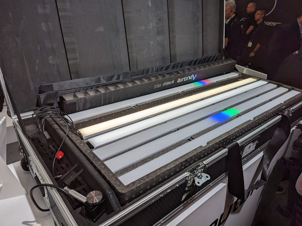 We also got a good look at the recently announced Aputure Infinibar system. Coming in 1′, 2′, and 4′ lengths the Infinibars are configurable in linear or geometric shapes for many different applications. Full RGBWW and individual pixel control means you can use these lights for an almost endless list of uses.