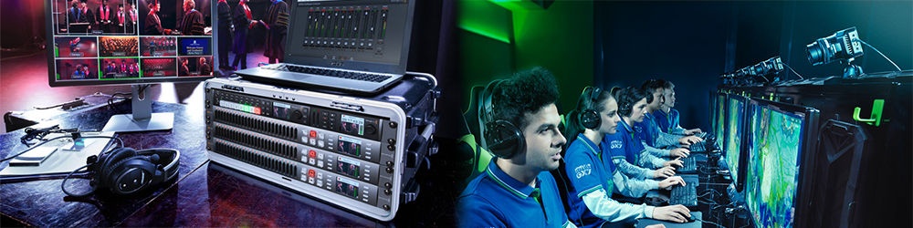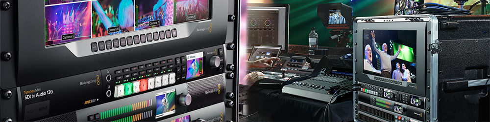 Blackmagic Design has a full line-up of equipment for live broadcast and studio production. Whether you need a streamlined and portable solution for streaming a sporting event, wedding, or concert, or if you are designing a full studio with multiple cameras, Blackmagic has all of the components you need for a seamless production. Each component is designed to work together with any other Blackmagic component to give you a highly adaptable, highly expandable system at a fraction of the price of the other manufacturers.