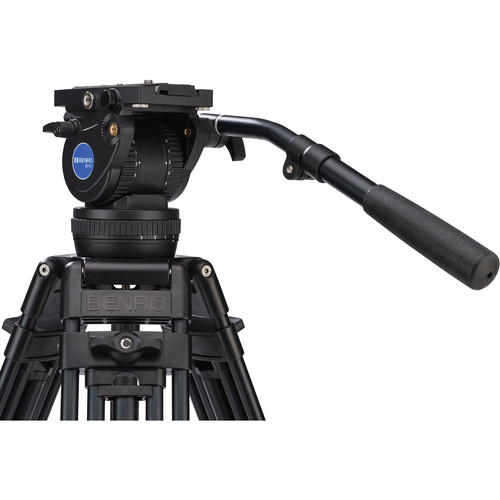 The Manfrotto 500 Fluid Video Head with 190X Video Aluminum Tripod & Leveling Column Kit includes a flat base fluid video head and a flat base 2-stage tripod with ball-leveling center column. The head features a wider-than-standard platform to provide better support for DSLRs, and it supports a maximum load capacity of 17.6 lb. A 500PLONG quick release plate is included, and the head’s side lock mounting system enables the plate to click in from above, instead of aligning and sliding in from one end.