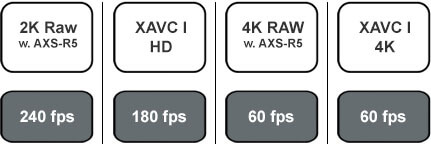 F55 high speed shooting is your ticket to exquisite slow motion. When you shoot 2K RAW at 240 fps and play back at 24p, you’ll get 10x super slow motion playback, perfect for catching not only sports, stunts and explosions, but also nature in delicious detail. (Requires AXS-R5 RAW recorder, sold separately.)