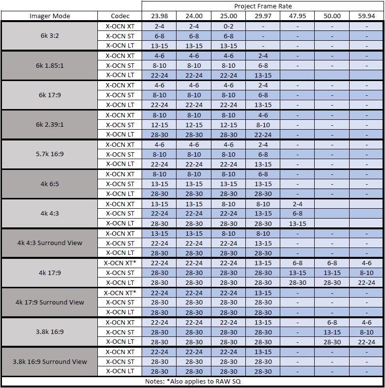 A. There are currently two anamorphic recording options. 4k 4:3 (4096×3024) which yields a very wide 2.70:1 aspect ratio, and 4k 6:5 (4096×3432) which yields a more common 2.39:1 aspect ratio, when using 2x anamorphic lenses.