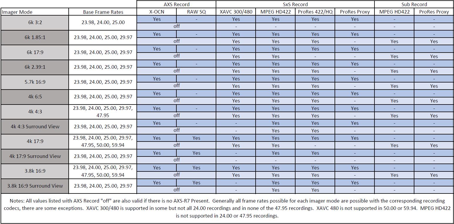 A. Yes, But only internally to XAVC. The AXS Recorder always follows the imager mode for its resolution. The 4k recording to the SxS cards will be letter and/or pillar boxed depending on the resolution selected, except for 17:9 aspect ratio recordings.